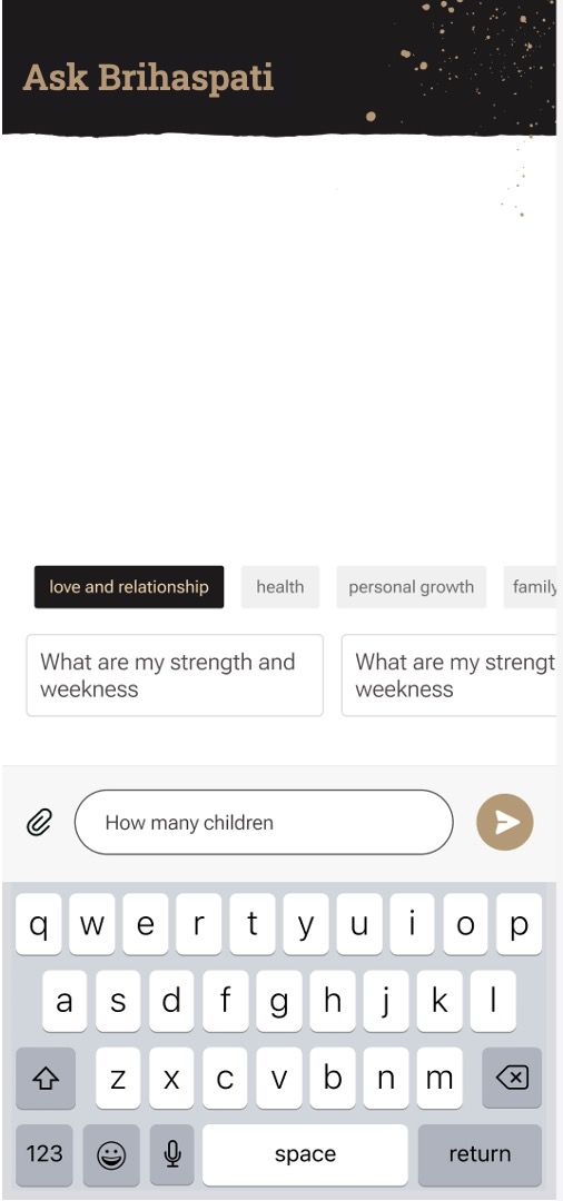 Brihaspati- That Personal Astrologer everyone needs- A Customer-first, AI-powered, Trusted personal astrologer friend who is always available & Knowledgeable on Vedic, Tarot, Numerology, Gems, Zodiac, Chinese etc.: *Always available 24x7 *A Trusted friend who assures 100% Privacy *Explain complexities in simple language *Able to continue with previous conversations *Able to empathize and respond in a person-specific tone *Provides Context-aware solutions on the fly *Is Knowledgeable and offers quality advice *Astro Vedic, Gems, Numerology Tarot, Chinese, Zodiac