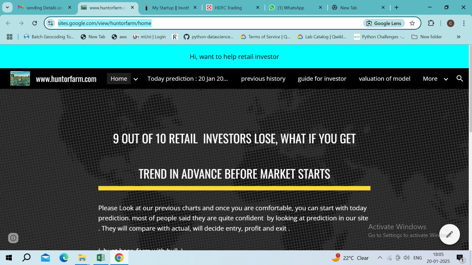 I have developed model to predict Index like Nifty 50 on a daily basis. all 4 index and this can be applied at many places in all products if I get data . as of now its for 1. Nifty 50, 2, bank nifty 3. fin nifty 4. midcap This can be replicated across all over world for similar products I can give demo. Nifty daily, others at month end I want to know how I can take this forward. will you be interested? I can give chart in advance to you for few days and can show how somebody can make money.I can show in advance and in real time. I plot 375 min chart and high low, can be identified Like I can give 375 min chart of Monday today to you, It is ready. accuracy high. People can make money either ( 1. Open to low or open to high ,,, 2, high to low or low to high 3. low to close or high to close. My 375 min chart will be almost same with some difference so person can identify and trend and can decide entry exit. like I can predict 350 down and based on that person can take conservative estimate and make money