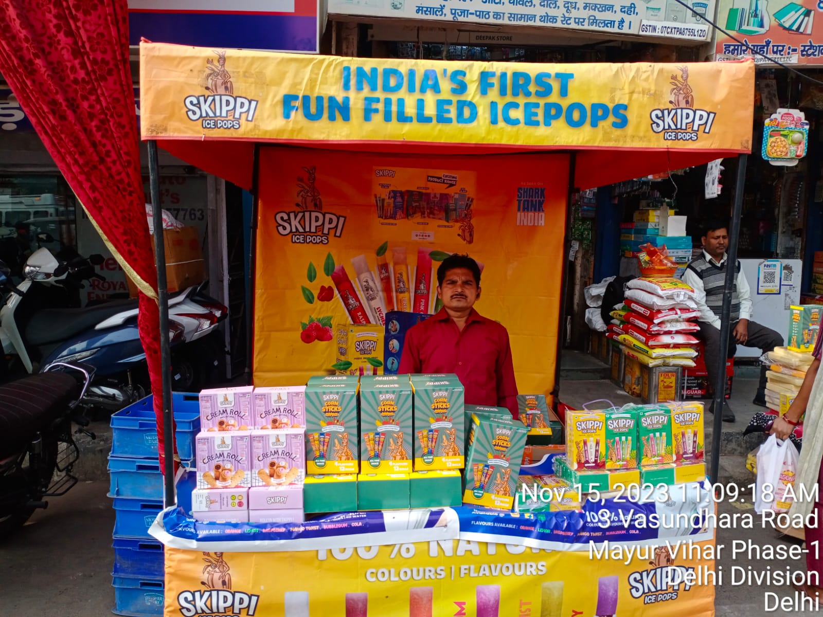 Skippi Icepops is manufactured by Self owned Patented technology. It is 100% natural product and is also Gluten free. USP: Manufactured, Distributed and Retailed in Liquid form at ambient temperature itself. NO refrigeration required throughout the supply chain. Consumer can buy and freeze it at home before enjoying them. Sold in 20,000+ outlets and will soon reach 1LAC outlets in next 12 months Skippi sold in Kirana stores, General stores, Bakeries, Medical stores, Modern Trade stores, etc. It is also sold on Zepto, Swiggy instamart, Amazon, Skippi website, CRED, etc. We EXPORT today to 9 countries as UAE, Canada, Kuwait, New Zelanad, Fiji, Qatar, etc.