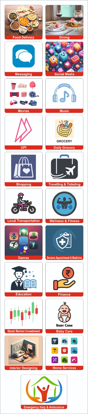 Super App with 20 Distinct Category Business Services. Food Delivery – Cloud kitchens, restaurant tie-ups, on-demand meals * Dining Reservations – Table booking at restaurants and cafes * Grocery Delivery – Quick commerce model via dark stores * E-commerce Shopping – Marketplace for daily essentials, fashion, electronics * Baby Care Products – Diapers, food, toys, clothing, accessories * Doctor Appointments – Book online consultations and in-clinic visits * Medicine Delivery – Prescription and OTC drugs delivered at home * Local Transportation – Auto, cab, bike rentals, and intercity travel * Bus/Train/Flight Booking – Ticketing across major travel routes * Wellness & Fitness – Online workouts, trainers, gym memberships * Social Media Platform – Photo, video sharing, user feed (like Instagram) * Instant Messaging – Secure messaging, media sharing (like WhatsApp) * Music Streaming – Regional and global content, curated playlists * Movie & OTT Streaming – Web series, live TV, subscription-based content * Education & Learning – Courses, tutors, school materials, test prep * Finance & UPI Payments – Mobile wallet, bill payments, recharge, UPI * Stock Market Investment – Demat integration, stock, mutual fund trading * Interior Design & Furniture – Home decor, designers, virtual planning tools * Home Services – Electricians, plumbers, maids, AC repair, pest control * Job Board & Freelance Platform – Local jobs, gig work, task postings.