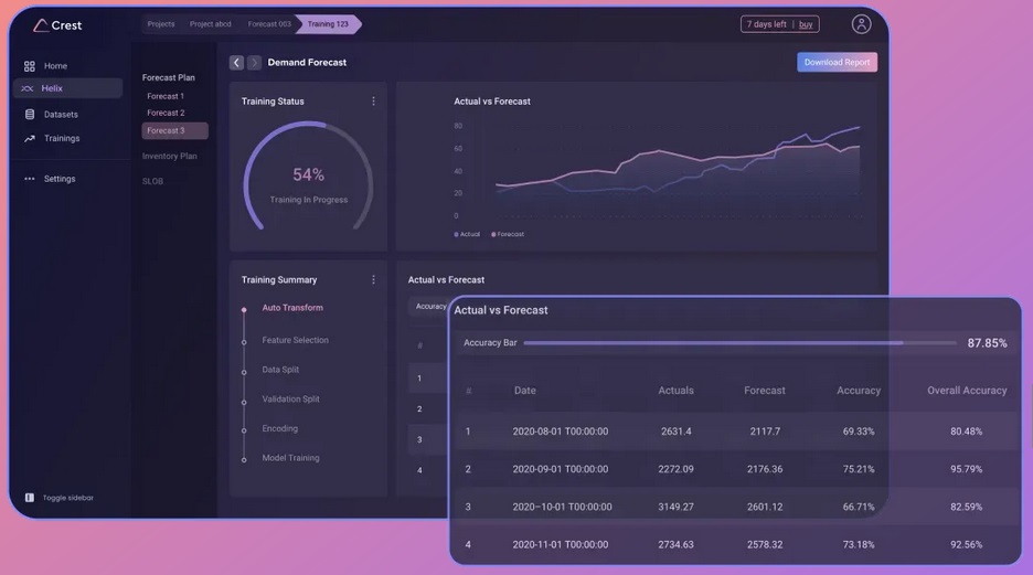 Crest is an AI-powered supply chain software that provides companies tools for demand forecasting, inventory planning and more. This helps them have the right amount of stock, optimise space and fulfil every order. In light of increasing competition and rising customer acquisition costs, we believe that a sustainable firm can only be built if consumers are able to find a product when required. The businesses of tomorrow have unique requirements and challenges. Old concepts simply do not make it in this day and age of escalating customer demands and competition. Crest's easy-to-use interface provides you with relevant insights, task automation, and accurate forecasts. So you can spend less time on spreadsheets, and more time growing your business.