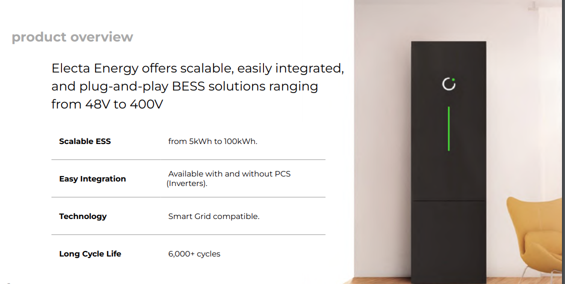 Electa Energy offers scalable, easily integrated, and plug-and-play ESS solutions ranging from 12V. Electa Energy offers scalable, easily integrated, and plug-and-play BESS solutions ranging from 48V to 400V. Electa Energy’s industrial and Utility level scalable and integrated BESS solutions ranging from 100kW to 5MWh systems.