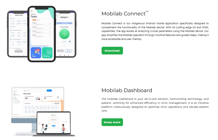Mobilab is a smart, portable diagnostic solution designed to deliver reliable and accurate blood testing results instantly. Tailored for healthcare professionals, it is ideal for use in diverse settings such as clinics, mobile health camps, emergency response situations, and remote locations. We are providing Vital-25 Parameters: Heart Profile Cholesterol, LDL and Triglycerides, LDL, HDL, Total Chol/HDL, VLDL, LDL/HDL, Non HDL Liver Profile : Total Bilirubin, Albumin, Total Protein, Globulin. A/G Ratio, AST, ALT, AST/ALT Kidney Profile : Creatinine, Uric Acid, Urea, BUN, BUN/Creatinine, eGFR Anemic & Diabetic : Haemoglobin, Glucose, HbA1c.