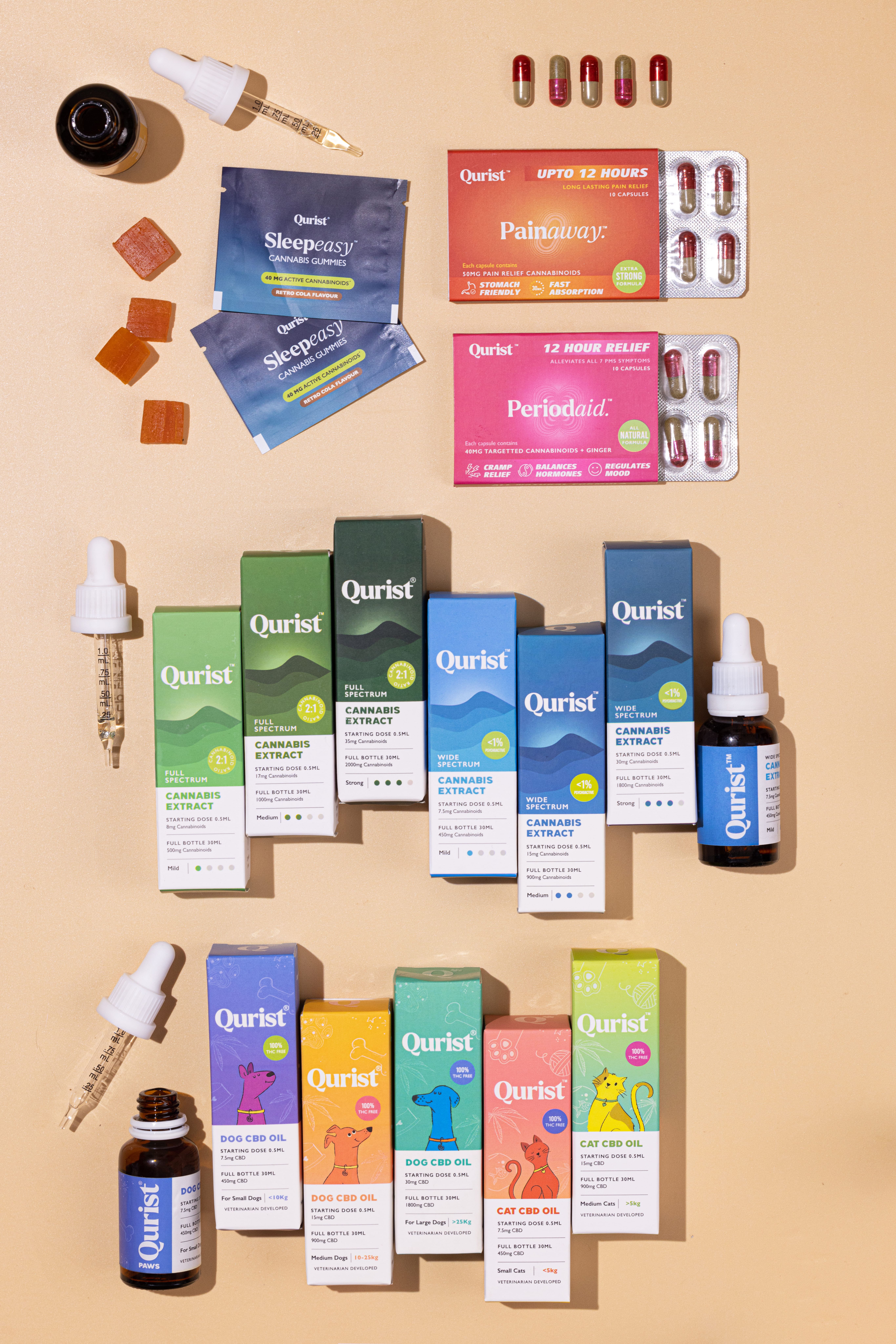 Qurist offers AYUSH-compliant, science-backed cannabis wellness solutions designed to support better sleep, pain relief, stress management, and everyday balance. Our portfolio includes thoughtfully dosed CBD and CBD+THC oils, capsules, gummies, and pet wellness products - tailored for diverse needs and lifestyles. We use responsibly sourced cannabis and clean extraction methods to maintain purity and effectiveness. All products undergo rigorous lab testing for safety and consistency and are securely packed for delivery across India.