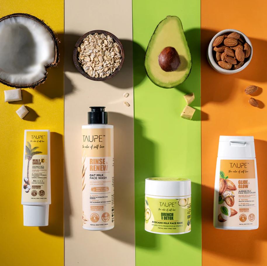 Taupe is India’s first vegan milk skincare brand. It combines the power of probiotics to balance the skin’s microbiome, resulting in healthier, glowing skin. Our products are dermatologically tested, 100% vegan, and free from harsh chemicals, making them perfect for sensitive skin. With a unique focus on natural ingredients and modern skincare science, we’re transforming skincare in India. India’s 1st microbiome friendly personal care brand that redefines beauty standards with cruelty free, vegan products for skin of colour.